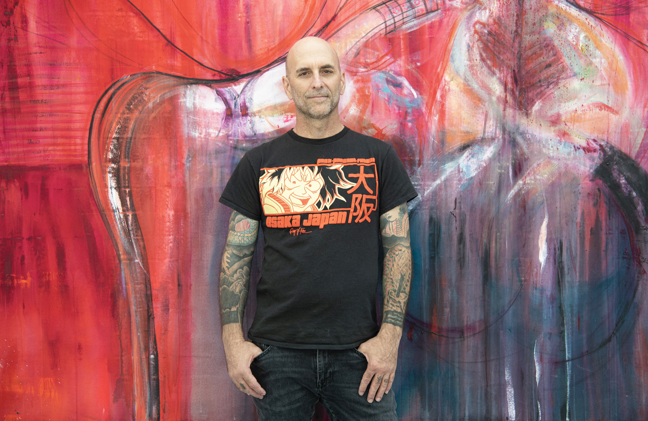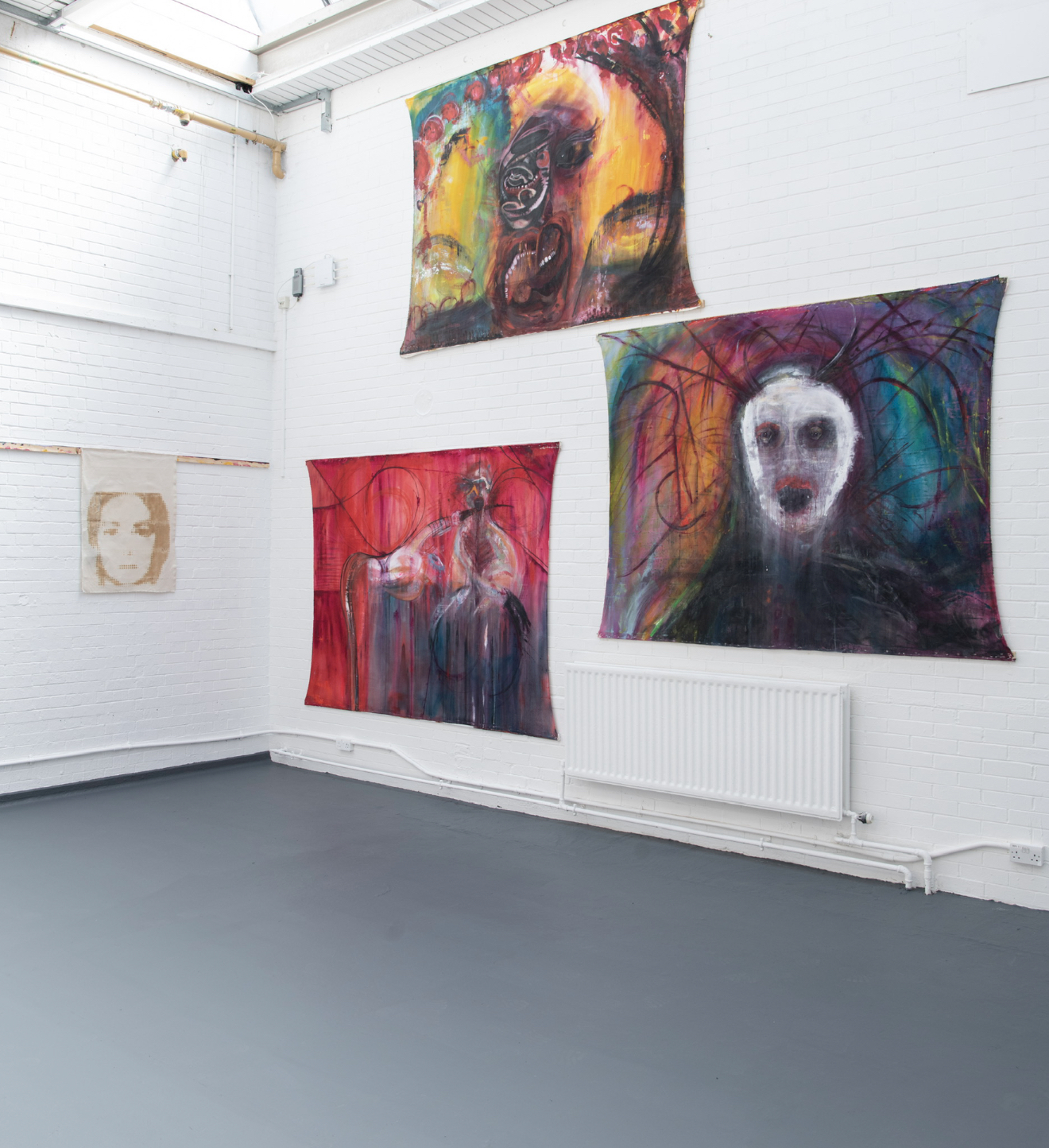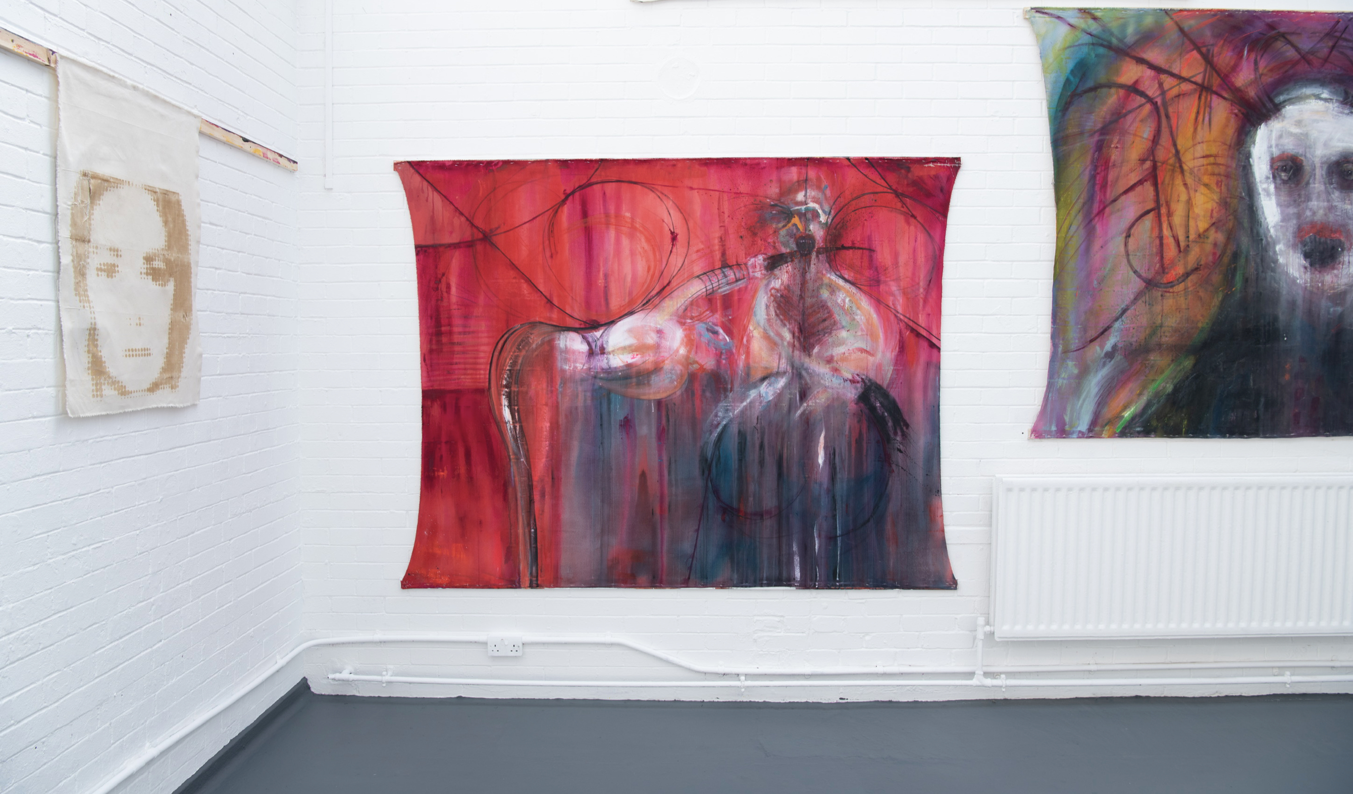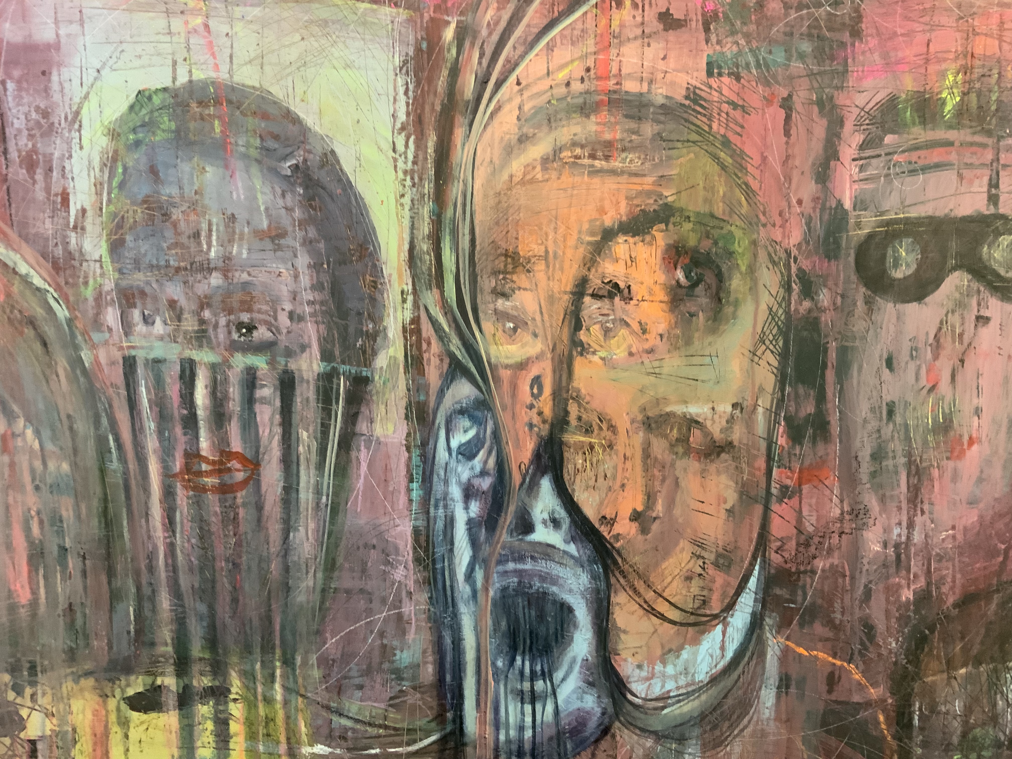 Acylic and mixed media on canvas tarps, 108×96″, 2021